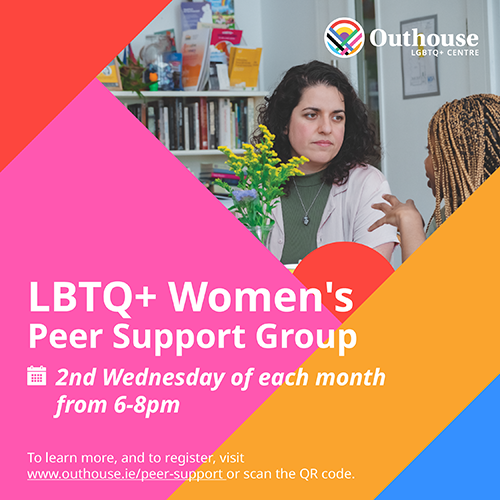 The LBTQ+ Women’s Peer Support Group is an initiative led by Outhouse LGBTQ+ Centre, in collaboration with Dublin Lesbian Line, providing a safe and supportive peer support environment for LBTQ+ women. An important element of the group is to create space for personal development and for queer women to build resilience and capacity.