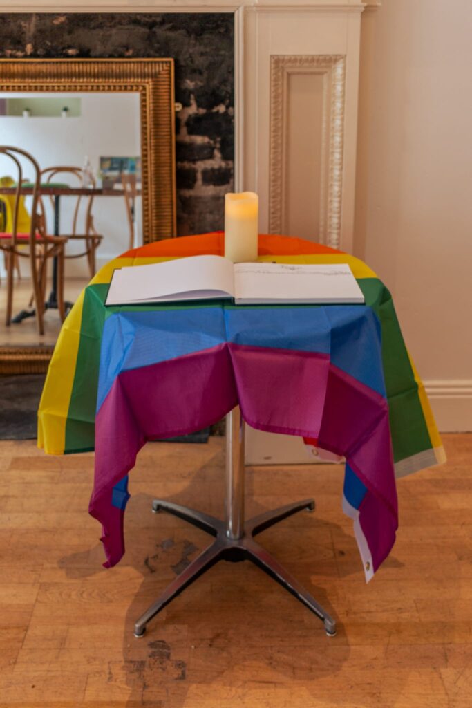 A book of condolences is now in place in the Outhouse Café to allow our community and allies to express their sympathy to the families, friends and loved ones of Aidan Moffitt and Michael Snee.